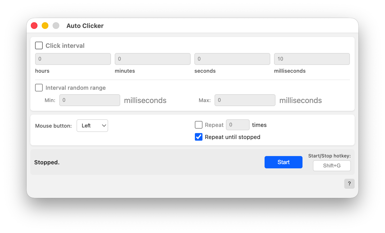 - Configurable Click Interval: Set hours, minutes, seconds, or milliseconds between clicks