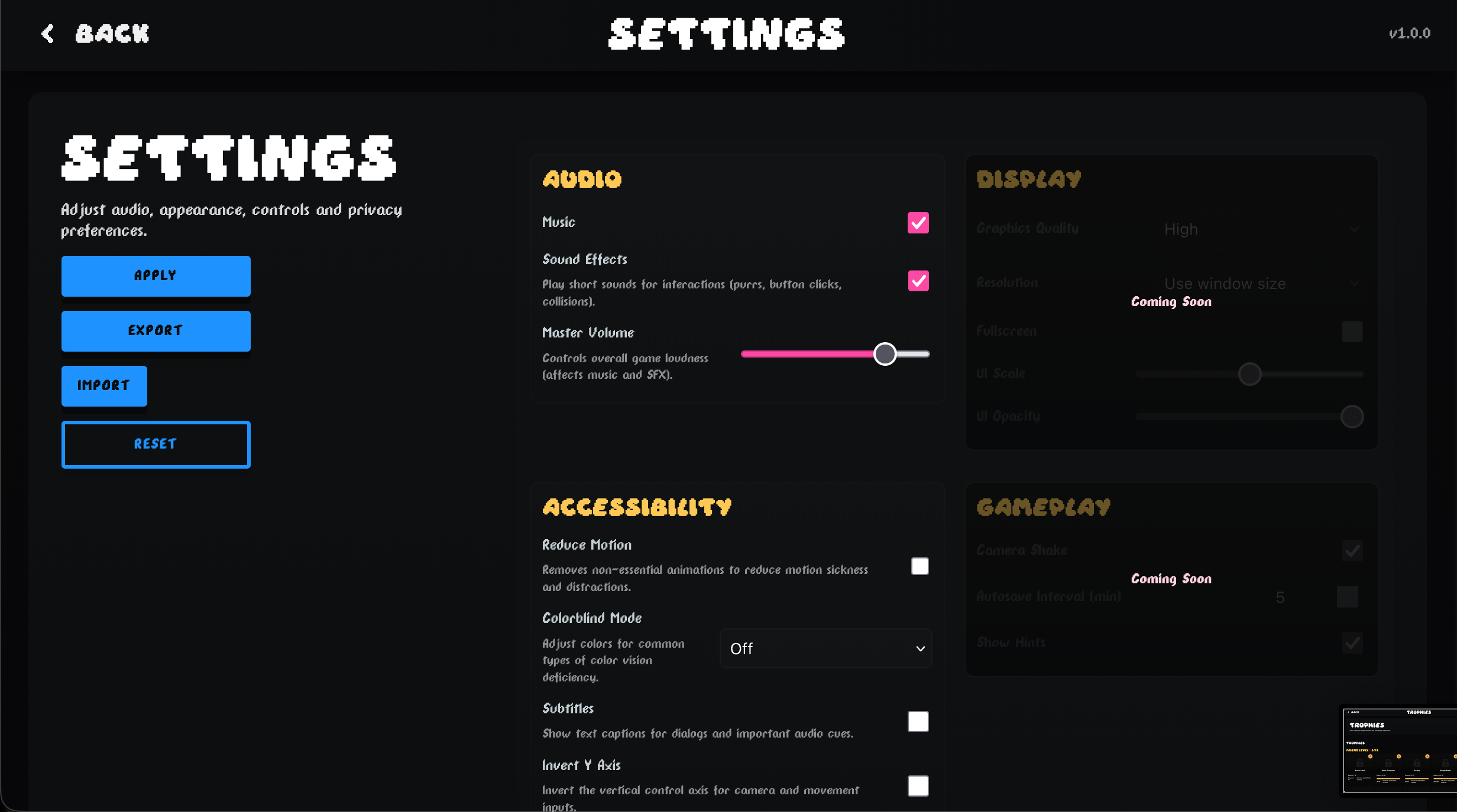 | Accessibility | Color-blind friendly, Subtitles, Configurable controls, High-contrast, Interactive tutorial, Blind friendly |