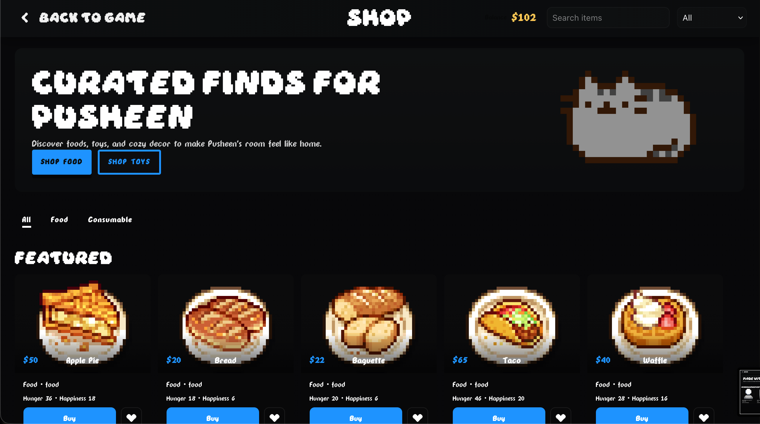 Pusheen Pal is a cozy, casual virtual pet game where you care for a cheerful Pusheen: pet, play, feed, groom and explore tiny minigames. It combines simple interactions, collectible skins, daily goals, and light progression to create a relaxing micro-game experience you can play in your browser or download and run locally.